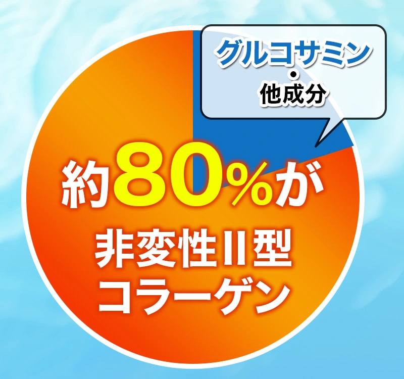 今まで満足できなかったのは、グルコサミン等の他成分は軟骨成分のごく一部に過ぎなかったからかもしれないんです。